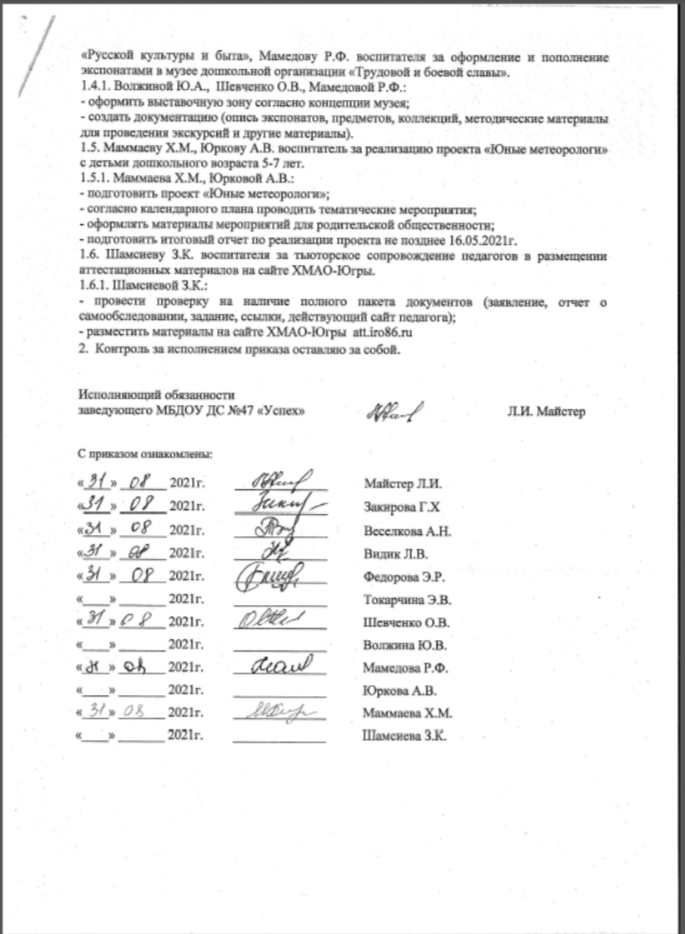 Приказ о назначении ответственным за тьюторское сопровождение педагогов в размещении аттестационных материалов на сайте ХМАО-Югры.
